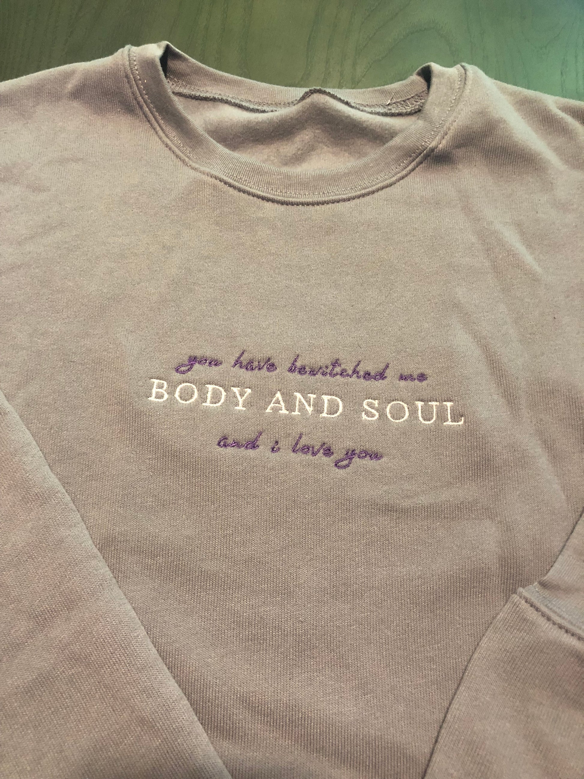Design on a Bella + Canvas light grayish purple crewneck. No imperfection in the design, I just need room. Really only used for product photos. Extremely soft!