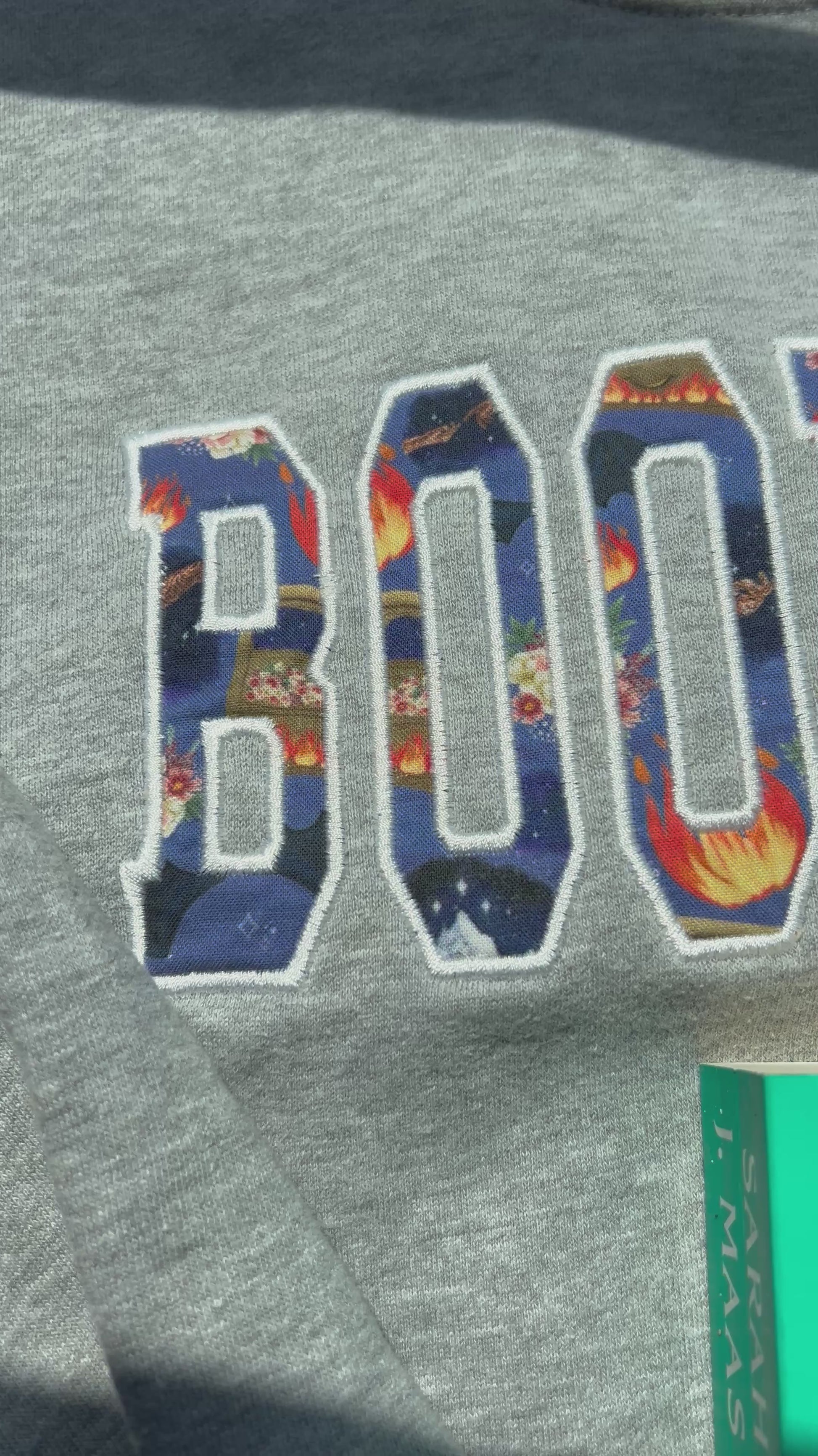 This design is embroidered on a 10oz heavyweight crewneck sweatshirt in the color grey. The crewneck is fleece lined and has a drop shoulder effect and has a slightly oversized fit. The crewneck is very soft and comfortable, similar to the Pride & Prejudice Collection crewnecks.